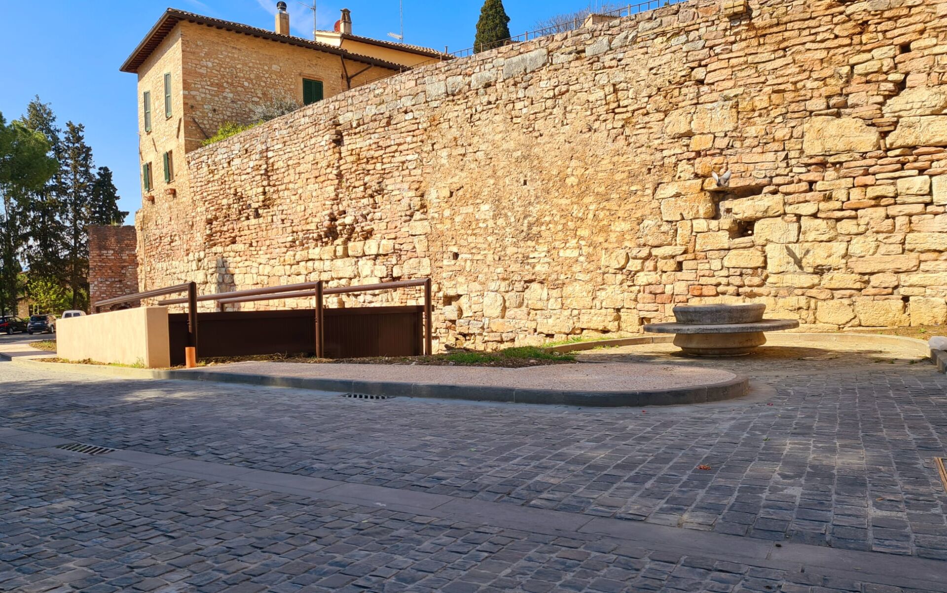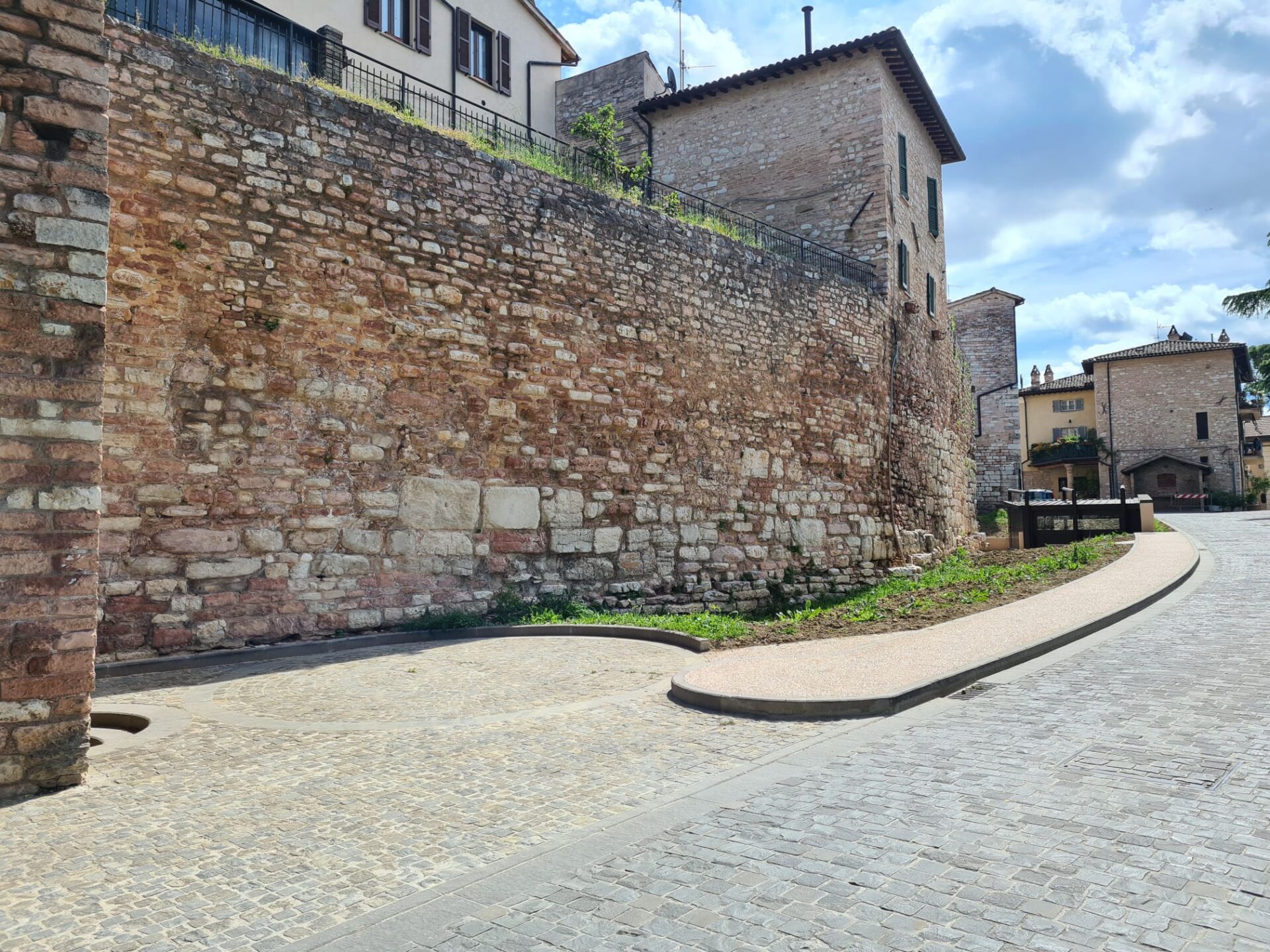 Spello – In fase di completamento la riqualificazione dell’area verde e archeologica di Via Roma. L’intervento, che rientra nell’ambito del secondo stralcio del Pir Centro storico, prevede la realizzazione di una zona verde, i marciapiedi in graniglia e una struttura prefabbricata a copertura dei mosaici che si trovano a ridosso delle mura urbiche. I reperti di una domus romana, erano emersi proprio durante i lavori determinando un successivo slittamento degli stessi per permettere agli enti preposti le verifiche e le autorizzazioni del caso.