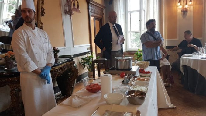 Cannara, c’è il tocco di Gianfranco Vissani alla Festa della Cipolla. Dal 4 al 9 e dall’11 al 16 settembre torna a Cannara la Festa della cipolla, regina della tavola anche in questa 38esima edizione presentata a Perugia giovedì 30 agosto. Ricco il programma che mette al centro la buona cucina ma non tralascia solidarietà, sport, cultura e spettacoli. E quale modo migliore per illustrarlo se non un cooking show che ha esaltato gusto e proprietà di questo prodotto della terra grazie al tocco dello chef stellato umbro Gianfranco Vissani che ‘firmerà’ le specialità alla cipolla, appositamente create per la festa, allo stand ‘Al Cortile antico’. “La cipolla ha tante proprietà – ha detto Vissani – e ho cercato di esaltarle nei piatti proposti, per esempio negli involtini di pollo e papaya alla salvia o nel gulasch con patate nature. L’importante è che il sapore della cipolla si senta senza aggredire il resto del piatto”.
