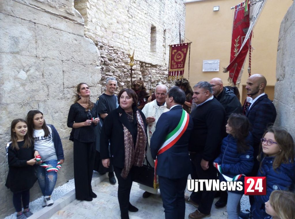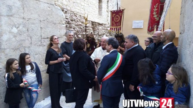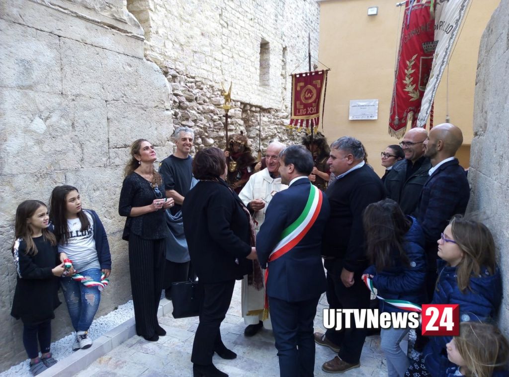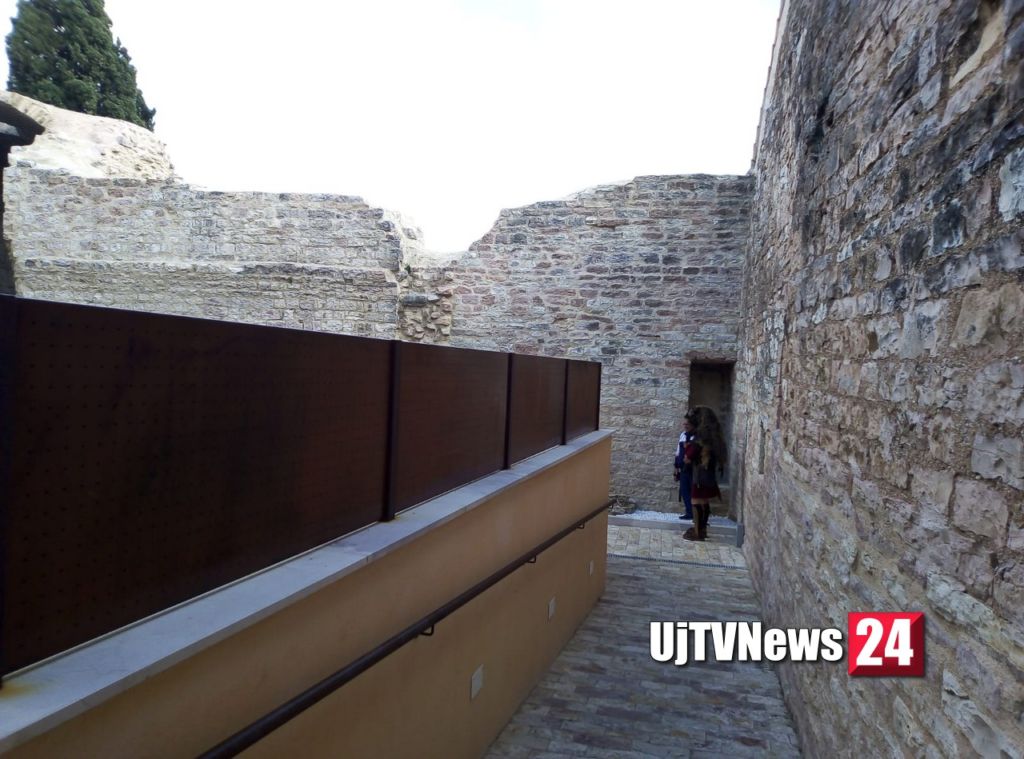 Queste azioni – ha precisato – rientrano all’interno del QSV- Quadro strategico di valorizzazione che permette di tenere insieme gli interventi e farli ragionare tra di loro al fine di riqualificare, restaurare e rendere il più possibile fruibile uno dei centri storici e borghi più belli d’Italia”. La Sabatini, nel rimarcare il ruolo dello Stato finalizzato alla tutela del bene riscoperto e la sinergia tra tutti i soggetti coinvolti nella realizzazione del progetto, con una interessante visita guidata ha illustrato ai cittadini gli elementi archeologici e il complesso lavoro di restauro. Infine, l’ing. Meschini, nel parlare del progetto dal punto di vista tecnico, ha sottolineato quanto sia stato importante per la riuscita dell’intervento la collaborazione di un gruppo di lavoro formato da più competenze disciplinari.
