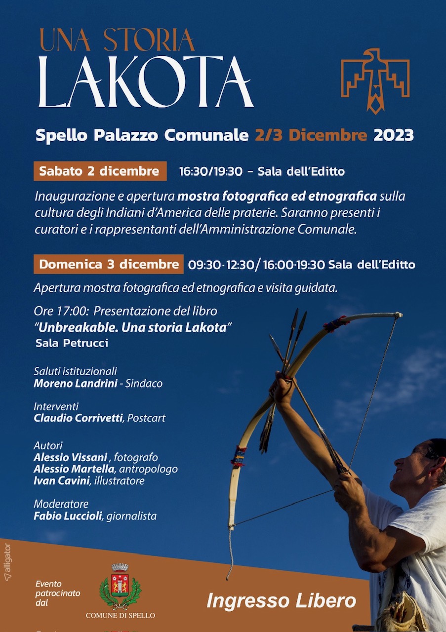 L’evento sarà anche l’occasione per presentare in anteprima nazionale il libro “Unbreakable”, un reportage fotografico curato dal fotografo Alessio Vissani, dall’antropologo Alessio Martella e dall’illustratore Ivan Cavini. Questo progetto unico offre l’opportunità di avvicinarsi alla cultura degli Indiani d’America attraverso molteplici e variegate iniziative.