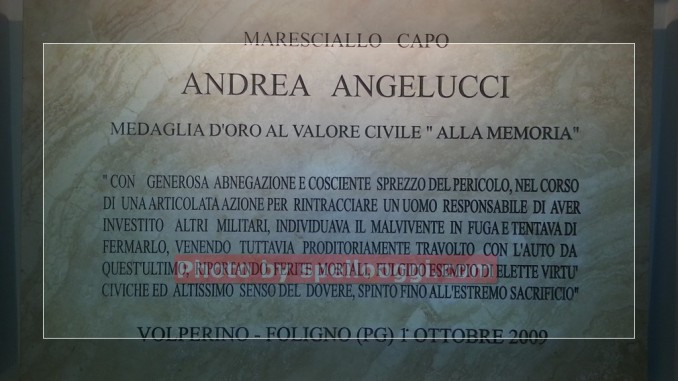 (spellooggi.it) SPELLO – Alle ore 10.30 di sabato 12 ottobre a Spello alla presenza del Comandante Generale dell’Arma dei Carabinieri, Generale di Corpo d’Armata, Leonardo Gallitelli, del Vicecomandante Generale e Comandante Interregionale Generale Tullio De Sette e delle massime autorità civili e religiose, si è tenuta la cerimonia di intitolazione della Caserma, sede della locale Stazione Carabinieri, al Maresciallo Capo Medaglia d’ Oro al Valor Civile “alla memoria” Andrea Angelucci.