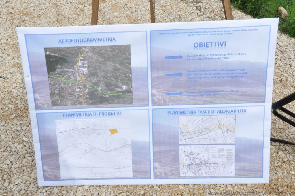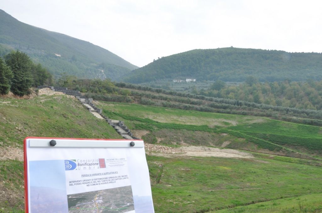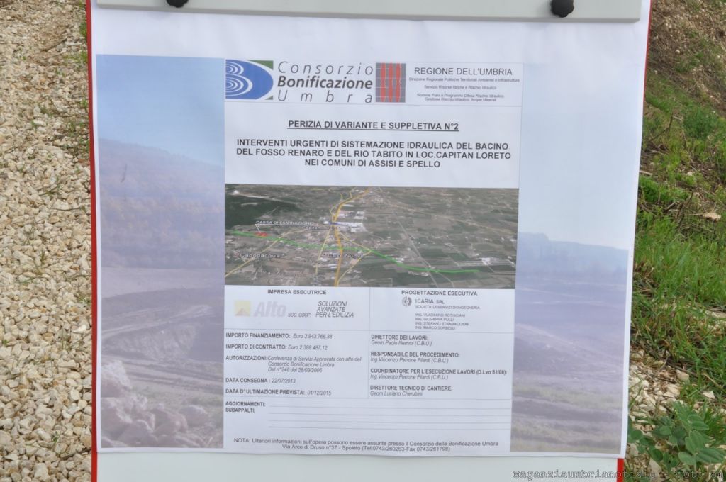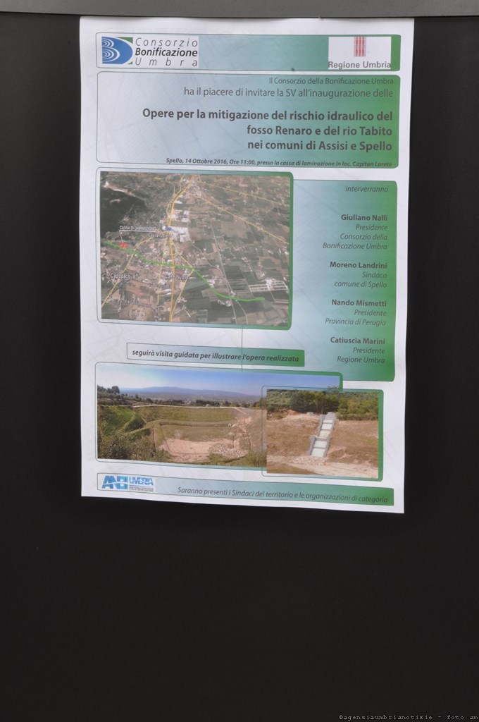 L’opera, inaugurata questa mattina dalla presidente della Regione Umbria, Catiuscia Marini, insieme al presidente del Consorzio della Bonificazione Umbra, Giuliano Nalli, e dei sindaci di Foligno, Assisi e Spello, Nando Mismetti, Stefania Proietti e Moreno Landrini, consiste innanzitutto in una “cassa di laminazione” delle acque che si sviluppa per una superficie di circa 20 mila metri quadrati. Altri interventi realizzati sono poi l’opera di presa in gabbioni sul Fosso Renaro; realizzazione di due briglie sul Fosso Renaro a monte della cassa di laminazione; opere di sistemazione e rivestimento della sezione idraulica del Fosso Renaro; manufatti su Fosso Renaro: un ponte stradale, tre tombini fognari; collettori fognari per intubamento fosso Renaro nell’abitato di Capitan Loreto per circa 1200 metri; collettore fognario di attraversamento SS.75 con tecnica “spingitubo”. Inoltre, nel territorio del comune di Assisi sono state effettuate opere di “risagomatura” e di protezione delle sponde del rio Tabito, tre ponti stradali sullo stesso corso d’acqua ed un raccordo con il Fosso rio Tabito.
