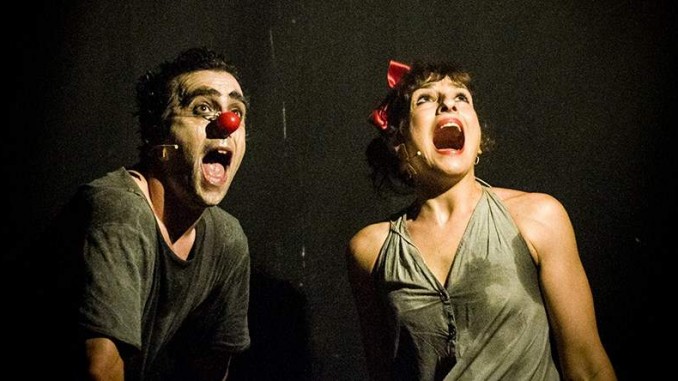 Con la regia di C.L.Grugher, l’intensa interpretazione di Michelangelo Bellini e Giulia Battisti più che raccontare una storia mette in scena uno scorcio di umanità: un clown dislessico e una giovane donna dei nostri giorni. Il clown forse proviene dal celebre episodio del clown tragico narrato da Søren Kierkegaard: il clown mandato ad annunciare l’incendio del circo, non è creduto dal pubblico che, pensando si tratti di un numero comico, scoppia a ridere finendo bruciato dalle fiamme. La giovane donna è presa (a caso) da una delle nostre famiglie.