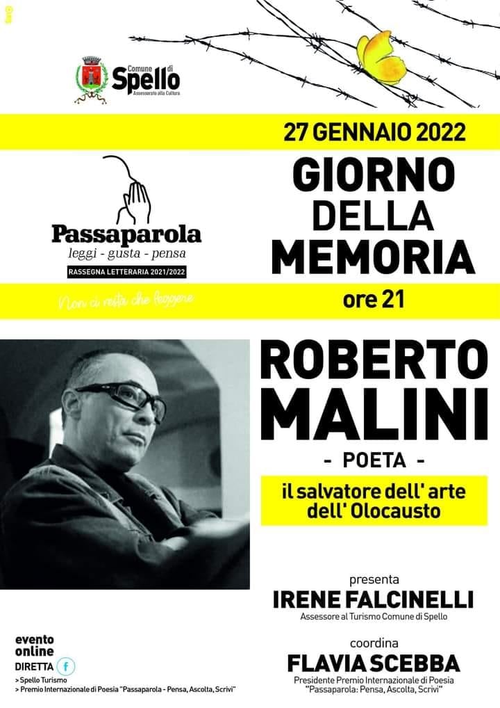 In occasione del prossimo 27 gennaio Spello dedicherà il suo evento online in diretta a un incontro con Roberto Malini, poeta e Premio Rotondi 2018 quale “Salvatore dell’arte dell’Olocausto”. Da oltre vent’anni, Malini è impegnato in un’operazione di recupero di dipinti, disegni, incisioni e sculture realizzate da artisti ebrei (o di altre minoranze invise al nazismo) assassinati nei campi di sterminio o sopravvissuti alla deportazione.