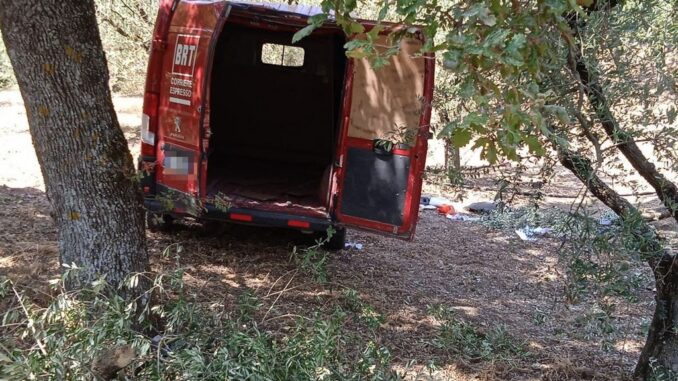 Furgone trasporto pacchi finisce in mezzo agli ulivi a Collepino