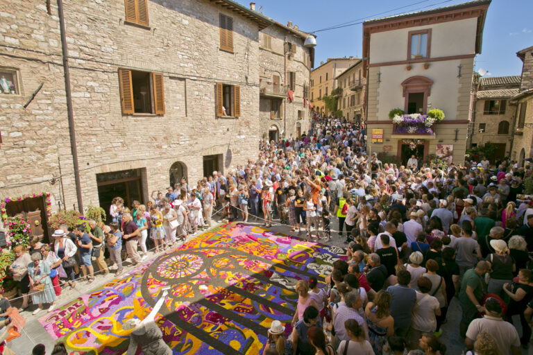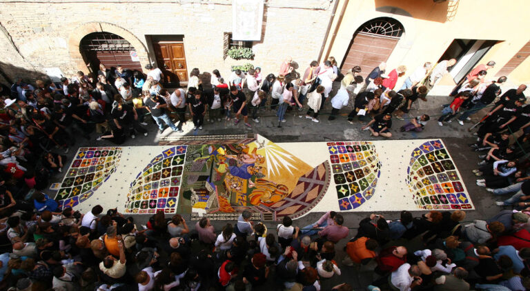 Infiorate di Spello 2025 – Spello si prepara ad accogliere le sue rinomate Infiorate, un evento che trasforma il borgo umbro in un’esposizione floreale a cielo aperto, in concomitanza con la solennità del Corpus Domini. L’edizione 2025, inserita nel contesto dell’Anno del Giubileo della Speranza, promette diverse novità, pur mantenendo la sua identità distintiva: composizioni realizzate esclusivamente con elementi naturali, senza l’ausilio di collanti o pigmenti artificiali.