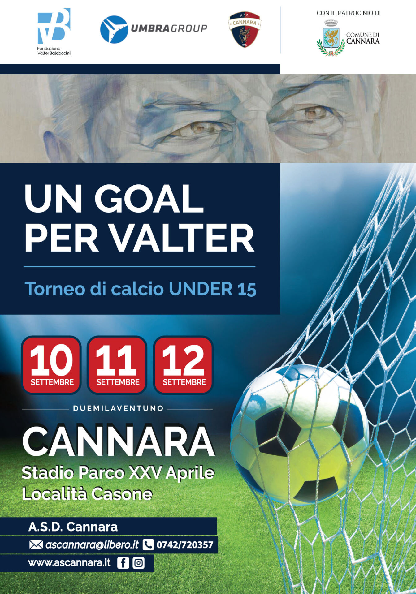 Fischio d’inizio venerdì 10 settembre 2021 alle 16.30 con l’inaugurazione e le prime partite di “Un goal per Valter” torneo calcistico maschile under 15 che si terrà allo Stadio Parco XXV aprile di Cannara.